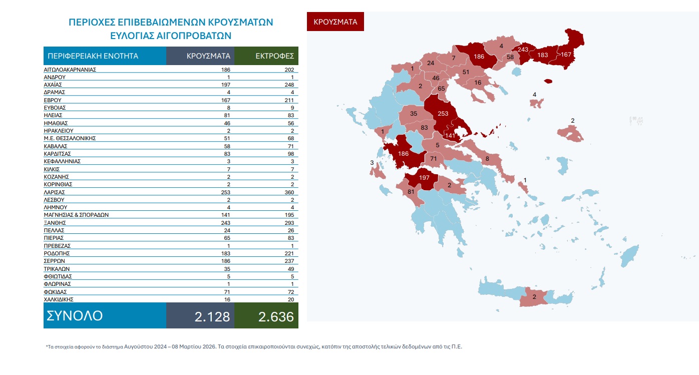 Σε κατάσταση υγειονομικής πολιορκίας εισέρχεται η χώρα και ειδικότερα η κτηνοτροφική παραγωγή της Ηπείρου, καθώς ο κρατικός μηχανισμός ενεργοποιεί το πλέον αυστηρό σχέδιο δράσης για την αναχαίτιση της ευλογιάς των αιγοπροβάτων ενόψει του Πάσχα 2026. Η κοινή συνέντευξη Τύπου του Υπουργείου Αγροτικής Ανάπτυξης και της Εθνικής Επιστημονικής Επιτροπής έστειλε ένα ηχηρό μήνυμα μηδενικής ανοχής, ξεκαθαρίζοντας πως το επόμενο δίμηνο θα είναι το πλέον καθοριστικό για την επιβίωση του κλάδου. Τα νούμερα που παρουσιάστηκαν προκαλούν σοκ, καθώς από τον Αύγουστο του 2024 έχουν καταγραφεί 2.128 επιβεβαιωμένα κρούσματα, οδηγώντας στην αναγκαστική θανάτωση 484.135 ζώων σε όλη την επικράτεια.
