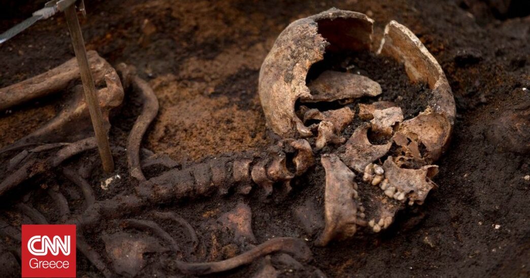 Ένας από τους γυναικείους σκελετούς που χρησιμοποιήθηκαν στη μελέτη. Είχε βρεθεί με τον σκελετό ενός νεογέννητου στην αγκαλιά του