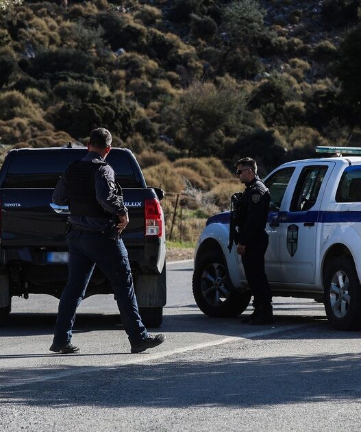 Δυνάμεις της αστυνομίας βρίσκονται σε επιφυλακή στα Βορίζια του Δήμου Φαιστού μετά το μακελειό με δύο νεκρούς και τέσσερεις τραυματίες