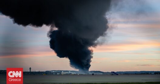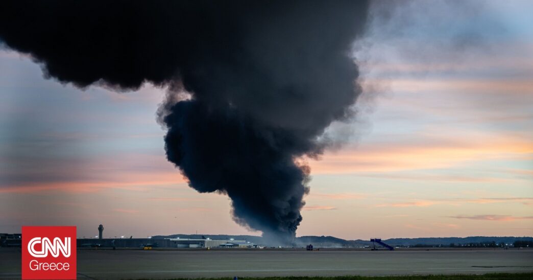 Καπνός υψώνεται από την περιοχή της συντριβής ενός φορτηγού αεροσκάφους της UPS στο Διεθνές Αεροδρόμιο Muhammad Ali του Λούισβιλ, την Τρίτη 4 Νοεμβρίου 2025, στο Λούισβιλ του Κεντάκι.
