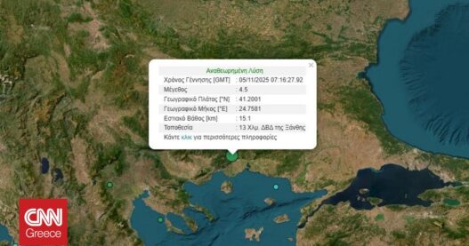 Ισχυρή σεισμική δόνηση 4,5 βαθμών της κλίμακας Ρίχτερ σημειώθηκε λίγο μετά τις 9.15 το πρωί της Τετάρτης στην Ξάνθη.