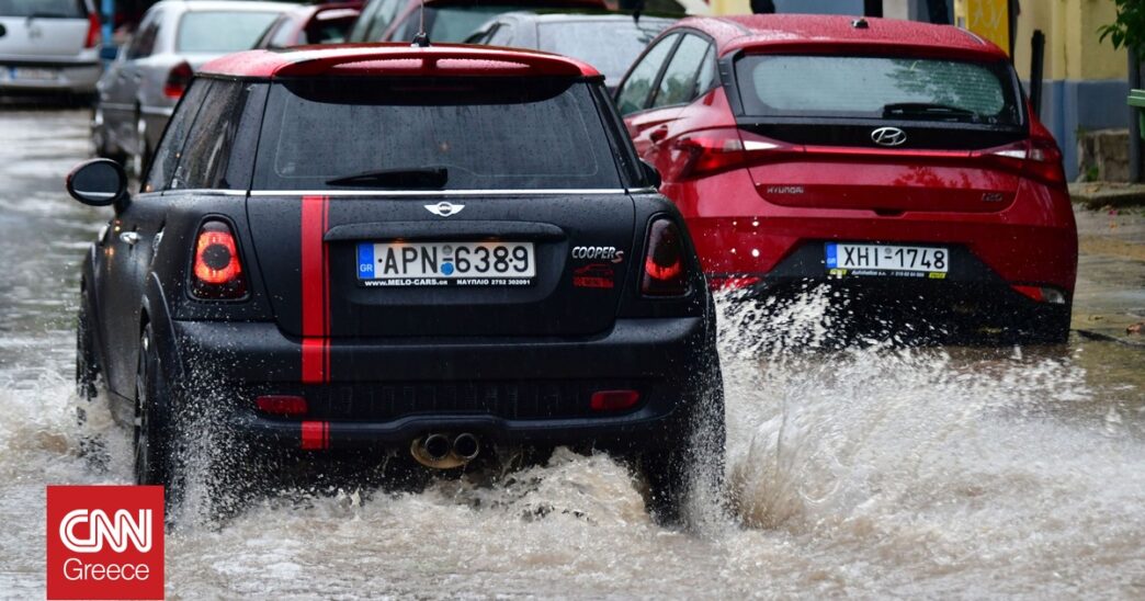 Δρόμοι πλημμύριζουν λόγω της ισχυρής βροχόπτωσης