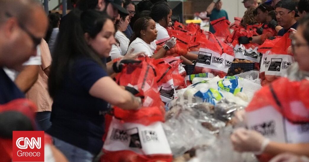 Μεγάλες ουρές σχηματίζουν εκατοντάδες αυτοκίνητα στην πόλη City of Industry της Καλιφόρνια, καθώς οι άνθρωποι περιμένουν για ώρες για να λάβουν δωρεάν τρόφιμα εν μέσω συνεχιζόμενου shutdown στις ΗΠΑ.