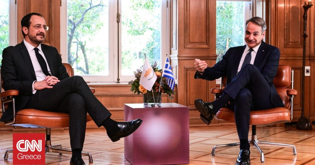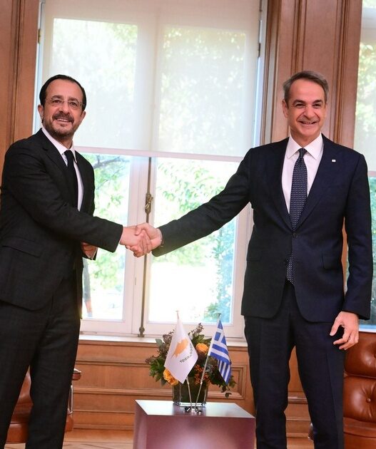 Κατά την έναρξη της συνάντησής τους, οι κκ. Μητσοτάκης και Χριστοδουλίδης είχαν τον ακόλουθο διάλογο: