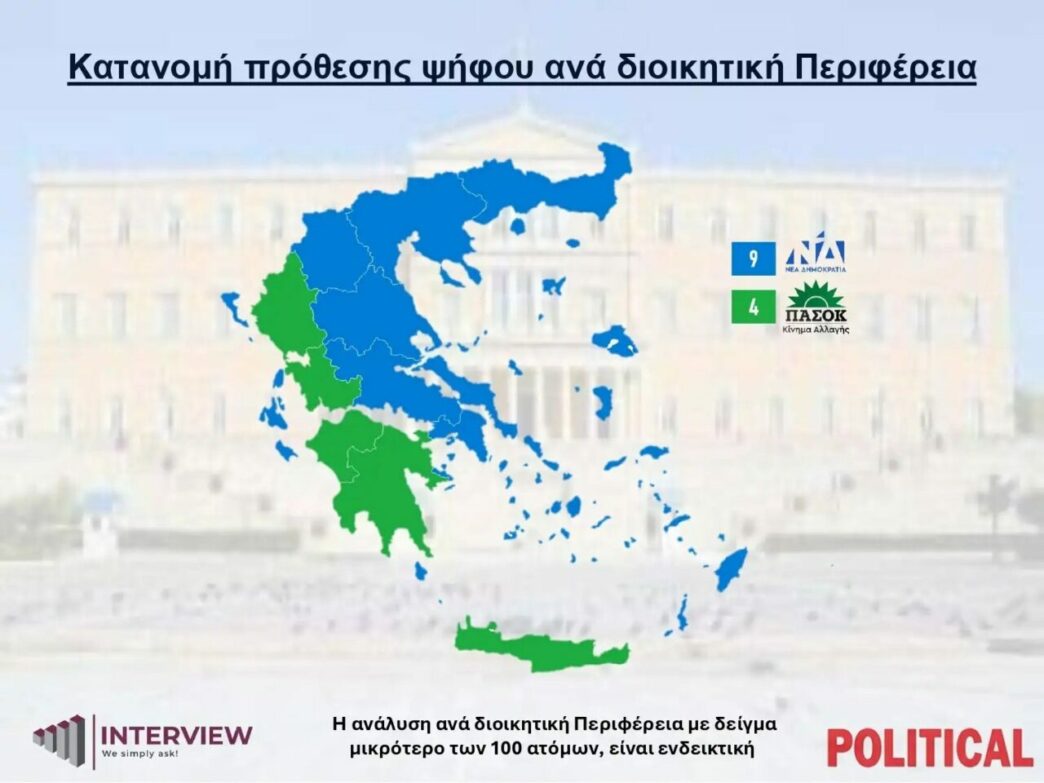 Η Ήπειρος, φαίνεται να αλλάζει χρώμα στον εκλογικό χάρτη, σύμφωνα με τη νέα πανελλαδική δημοσκόπηση της Interview για το Political. Το ΠΑΣΟΚ εμφανίζει σαφές προβάδισμα έναντι της Νέας Δημοκρατίας, ανατρέποντας τα δεδομένα και δημιουργώντας νέα πολιτικά ερωτήματα για την επόμενη μέρα.