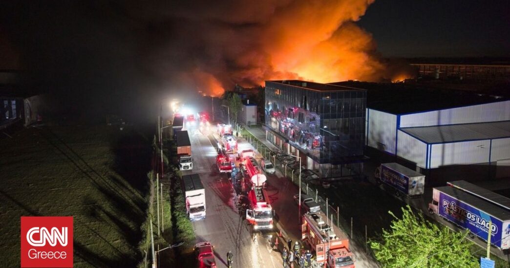 Σε πλάνα από το βιομηχανικό πάρκο Spegazzini αποτυπώνεται η έκταση της καταστροφής στην περιοχή, όπου έχουν σπεύσει ισχυρές δυνάμεις της Πυροσβεστικής και ασθενοφόρα.