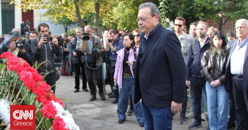 Τα μηνύματα του Νοέμβρη είναι ζωντανά, όσο κι αν θέλει να τα κρύψει η αντίδραση -όπως και τους νεκρούς του Πολυτεχνείου- για “Ψωμί – Παιδεία – Ελευθερία” απέναντι στη φτώχεια και τα χαμηλά εισοδήματα, απέναντι στην καταπάτηση των δημοσίων αγαθών, της Παιδείας και της Υγείας, αλλά και για μια Ελλάδα που θα έχει Δημοκρατία, που θα έχει Κράτος Δικαίου, που δεν θα έχει διαπλοκή και διαφθορά», υπογράμμισε και κατέληξε: