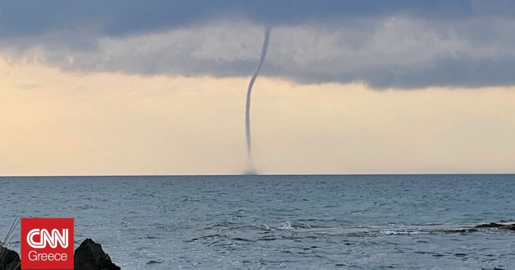 Ένα ασυνήθιστο αλλά εντυπωσιακό φαινόμενο κατέγραψε ο φακός στο Μαθράκι όπου τέσσερις υδροστρόβιλοι εμφανίστηκαν ταυτόχρονα με τον ένα να «σκάει» την παραλία.
