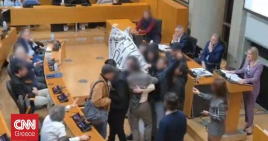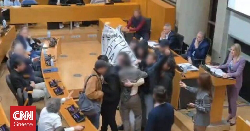 Σύμφωνα με πληροφορίες, περίπου 15 άτομα εισήλθαν στην αίθουσα του Δημοτικού Συμβουλίου, στο Δημαρχιακό Μέγαρο Θεσσαλονίκης, όπου άνοιξαν πανό και φώναζαν συνθήματα.