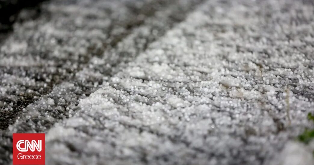 Ο δρόμος άσπρισε από το χαλάζι