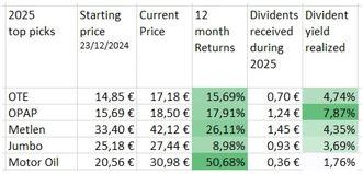 Τα αποτελέσματα των κορυφαίων επιλογών της εταιρείας για την προηγούμενη χρονιά εμφανίζονται παρακάτω.