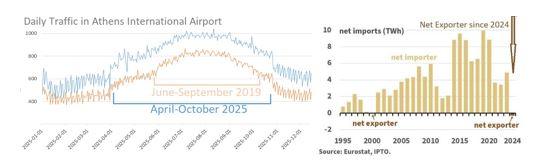 Η Ελλάδα έχει καταστεί καθαρός εξαγωγέας ενέργειας και λειτουργεί εδώ και δεκαετίες με αμυντικές δαπάνες άνω του 2% του ΑΕΠ. Ο τουρισμός, συνεχίζει να επεκτείνεται πέρα από την παραδοσιακή καλοκαιρινή περίοδο, με τους μήνες Απρίλιο, Μάιο, Σεπτέμβριο και Οκτώβριο να συνεισφέρουν όλο και μεγαλύτερο μερίδιο στις ετήσιες εισροές.