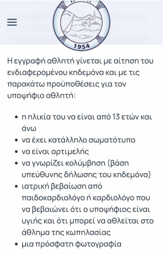 Στην επίσημη ιστοσελίδα του Ναυτικού Ομίλου Ιωαννίνων αναρτήθηκε ανακοίνωση, σύμφωνα με την οποία, μεταξύ των προϋποθέσεων για την εγγραφή νέου αθλητή, αναφέρεται ρητά και χωρίς αστερίσκους ότι θα πρέπει να «ΕΧΕΙ ΚΑΤΑΛΛΗΛΟ ΣΩΜΑΤΟΤΥΠΟ».