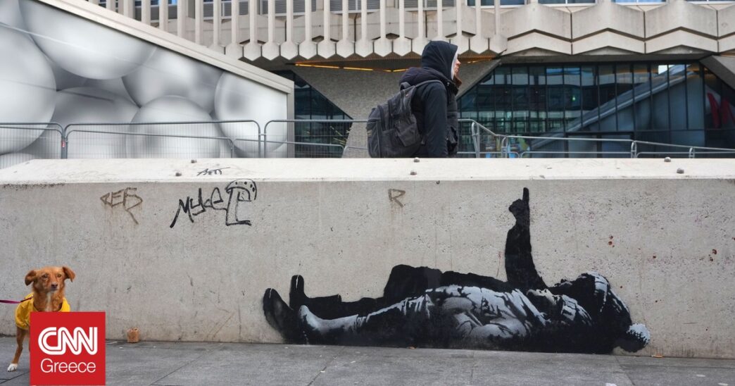 Δυο παιδιά, ξαπλωμένα, κοιτούν ψηλά και το ένα δείχνει με το χέρι του προς τον ουρανό… Ο βρετανός καλλιτέχνης Banksy επιβεβαίωσε πως ένα νέο γκράφιτι που εμφανίστηκε σε τοίχο κτηρίου στο Λονδίνο είναι δημιούργημά του.