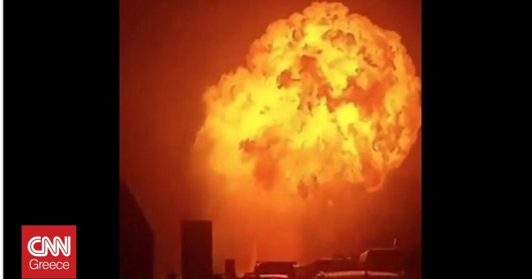 Βίντεο από διερχόμενους οδηγούς δείχνουν το τεράστιο μανιτάρι καπνού και τις φλόγες που προκλήθηκαν μετά την έκρηξη.