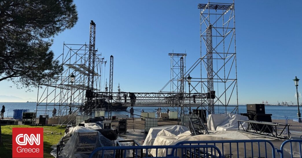 Από το μεσημέρι, συνεργεία του δήμου Θεσσαλονίκης άρχισαν να στήνουν στο παραλιακό μέτωπο τη σκηνή που θα φιλοξενήσει την παραμονή της Πρωτοχρονιάς, από τις 8 το βράδυ, τους κορυφαίους djs, ενώ παράλληλα με γερανό σηκώνονται και δοκιμάζονται τα φώτα που θα «λούσουν» τα πρώτα λεπτά του 2026 τον Λευκό Πύργο.