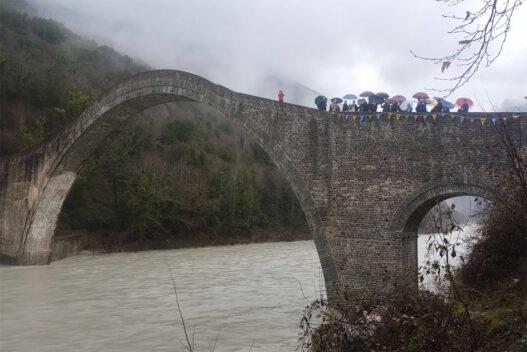 Στο ιστορικό και εμβληματικό γεφύρι της Πλάκας χτύπησε και φέτος η καρδιά των Θεοφανείων για τα Βόρεια Τζουμέρκα, σε μια τελετή που συνδύασε τη θρησκευτική ευλάβεια με την ιστορική μνήμη της περιοχής. Παρά το γεγονός ότι οι καιρικές συνθήκες ήταν ιδιαίτερα δυσμενείς, με τη συνεχή βροχόπτωση να δυσκολεύει τις μετακινήσεις, δεκάδες κάτοικοι από τις κοινότητες Ραφταναίων και Μονολιθίου, καθώς και πολλοί επισκέπτες, έδωσαν το «παρών» στις όχθες του Αράχθου.