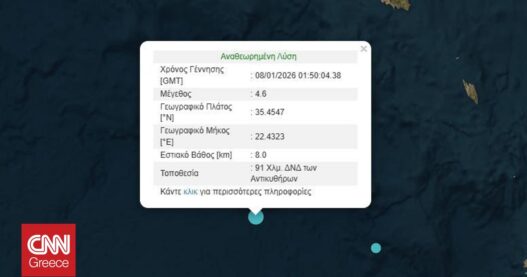 Σεισμική δόνηση μεγέθους 4,6 βαθμών της κλίμακας Ρίχτερ, σημειώθηκε στις 03:50 στον θαλάσσιο χώρο ανοιχτά των Αντικυθήρων.