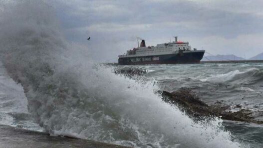 Σε πλήρη εξέλιξη βρίσκεται το κύμα κακοκαιρίας που πλήττει τη χώρα, προκαλώντας σοβαρά προσκόμματα στις θαλάσσιες συγκοινωνίες λόγω των θυελλωδών νοτιάδων. Σύμφωνα με τα τελευταία στοιχεία της ΕΜΥ, η ένταση των ανέμων στα πελάγη αγγίζει κατά τόπους τα 8 με 9 μποφόρ, γεγονός που ανάγκασε τις λιμενικές αρχές να προχωρήσουν σε εκτεταμένες απαγορεύσεις απόπλου.