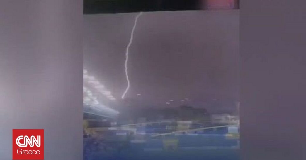 Έντονη αναστάτωση προκάλεσε περιστατικό στο Αγρίνιο, όταν κεραυνός έπεσε στον αγωνιστικό χώρο του γηπέδου του Παναιτωλικού την ώρα της αναμέτρησης με τον ΠΑΟΚ. Το συμβάν καταγράφηκε σε βίντεο από άτομο που παρακολουθούσε τον αγώνα από τις εξέδρες και γρήγορα έκανε τον γύρο του διαδικτύου.