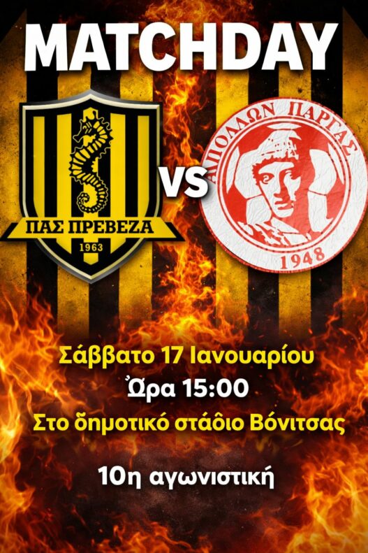Με την ψυχολογία στα ύψη και το βλέμμα σταθερά στραμμένο στην κορυφή του βαθμολογικού πίνακα, ο ΠΑΣ Πρέβεζα ετοιμάζεται να κάνει το πρώτο βήμα στον δεύτερο γύρο του πρωταθλήματος, φιλοξενώντας τον πάντα υπολογίσιμο Απόλλωνα Πάργας. Η αναμέτρηση, που αναμένεται να συγκεντρώσει το ενδιαφέρον των φιλάθλων της περιοχής, δεν είναι απλώς ένας ακόμα αγώνας, αλλά μια δήλωση προθέσεων για τη συνέχεια της σεζόν. Μετά από ένα πρώτο μισό που άφησε υποσχέσεις και έδειξε τη δυναμική του ρόστερ, οι γηπεδούχοι εισέρχονται στην τελική ευθεία με στόχο την απόλυτη συγκέντρωση και τη διατήρηση του νικηφόρου σερί που θα τους επιτρέψει να εδραιωθούν στις πρώτες θέσεις.
