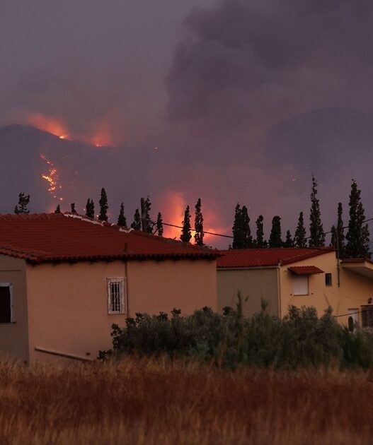 Στους κατοίκους εστάλη, νωρίτερα μήνυμα από το «112» να παραμείνουν μέσα στα σπίτια τους λόγω της πυρκαγιάς και των πυκνών καπνών.