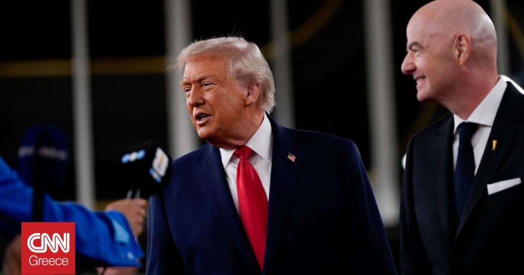 Ο Πρόεδρος Ντόναλντ Τραμπ παραλαμβάνει το πρώτο Βραβείο Ειρήνης της FIFA από τον Πρόεδρο της FIFA Τζιάνι Ινφαντίνο κατά τη διάρκεια της κλήρωσης για το Παγκόσμιο Κύπελλο της FIFA 2026 στο Κένεντι Σέντερ, στις 5 Δεκεμβρίου 2025, στην Ουάσινγκτον.