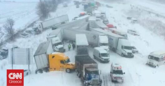 Τουλάχιστον εννέα άνθρωποι τραυματίστηκαν σε καραμπόλα στο Μίσιγκαν , στην οποία ενεπλάκησαν περισσότερα από 100 οχήματα, εκ των οποίων τα 30 – 40 ήταν ημιφορτηγά. Η καραμπόλα – στην οποία ενεπλάκησαν νταλίκες και ΙΧ- έγινε στον διαπολιτειακό αυτοκινητόδρομο 196, που ήταν κάτασπρος από τη σφοδρή χιονόπτωση.