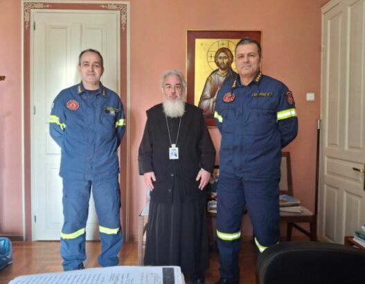 Με την ευκαιρία της ανάληψης των καθηκόντων του, ο νέος Διοικητής της Διοίκησης Πυροσβεστικών Υπηρεσιών Νομού Πρέβεζας, Πύραρχος κ. Δανιήλ Στούπας, πραγματοποίησε επίσημη επίσκεψη στον Σεβασμιώτατο Μητροπολίτη Νικοπόλεως και Πρεβέζης κ. Χρυσόστομο. Συνοδευόμενος από τον Διοικητή της Π.Υ. Πρέβεζας κ. Γεώργιο Γκούμα, ο νέος επικεφαλής των πυροσβεστικών δυνάμεων του νομού είχε την ευκαιρία να συζητήσει με τον Σεβασμιώτατο θέματα που αφορούν την ασφάλεια της περιοχής και την προστασία του φυσικού περιβάλλοντος.