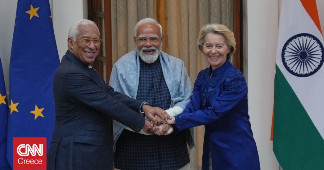 Ο Μόντι και η πρόεδρος της Ευρωπαϊκής Επιτροπής Ούρσουλα φον ντερ Λάιεν αναμένεται να προχωρήσουν σε κοινή ανακοίνωση στο πλαίσιο της συνόδου κορυφής Ινδίας–ΕΕ στο Νέο Δελχί αργότερα σήμερα Τρίτη, όπου θα παρουσιαστούν και οι λεπτομέρειες της συμφωνίας.