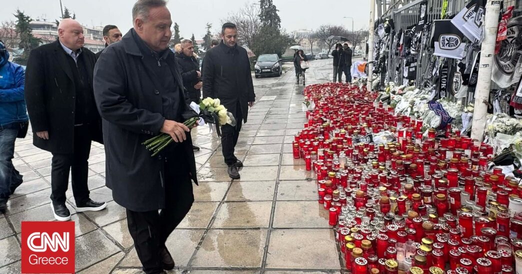 Ο κ. Αγγελούδης, συνοδευόμενος από τον αντιδήμαρχο Ψηφιακής Πολιτικής, Διοικητικής Αναδιάρθρωσης και Εξυπηρέτησης του Πολίτη και πρόεδρο της επιτροπής για τα 100 χρόνια του ΠΑΟΚ, Κώστα Βασιλόπουλο, τον αντιδήμαρχο Μέριμνας για την Τρίτη Ηλικία, Κοινοτήτων και Δημοτικών Αποκέντρωσης, Παντελή Καζαντζίδη, τον δημοτικό σύμβουλο και πρώην άσο του Δικεφάλου, Γιώργο Τουρσουνίδη, τον δημοτικό σύμβουλο και πρώην ποδοσφαιριστή του Άρη, Σάκη Πρίττα και τον πρώην μπασκετμπολίστα που τίμησε τα ασπρόμαυρα χρώματα και μέλος της δημοτικής του παράταξης, Γιάννη Γιαννούλη, άφησε τα λουλούδια σε ένδειξη πένθους και σεβασμού προς τους επτά νεκρούς και τους τρεις τραυματίες.