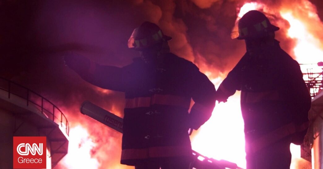 Εικόνες δείχνουν πυκνούς καπνούς να υψώνονται πάνω από το διυλιστήριο.