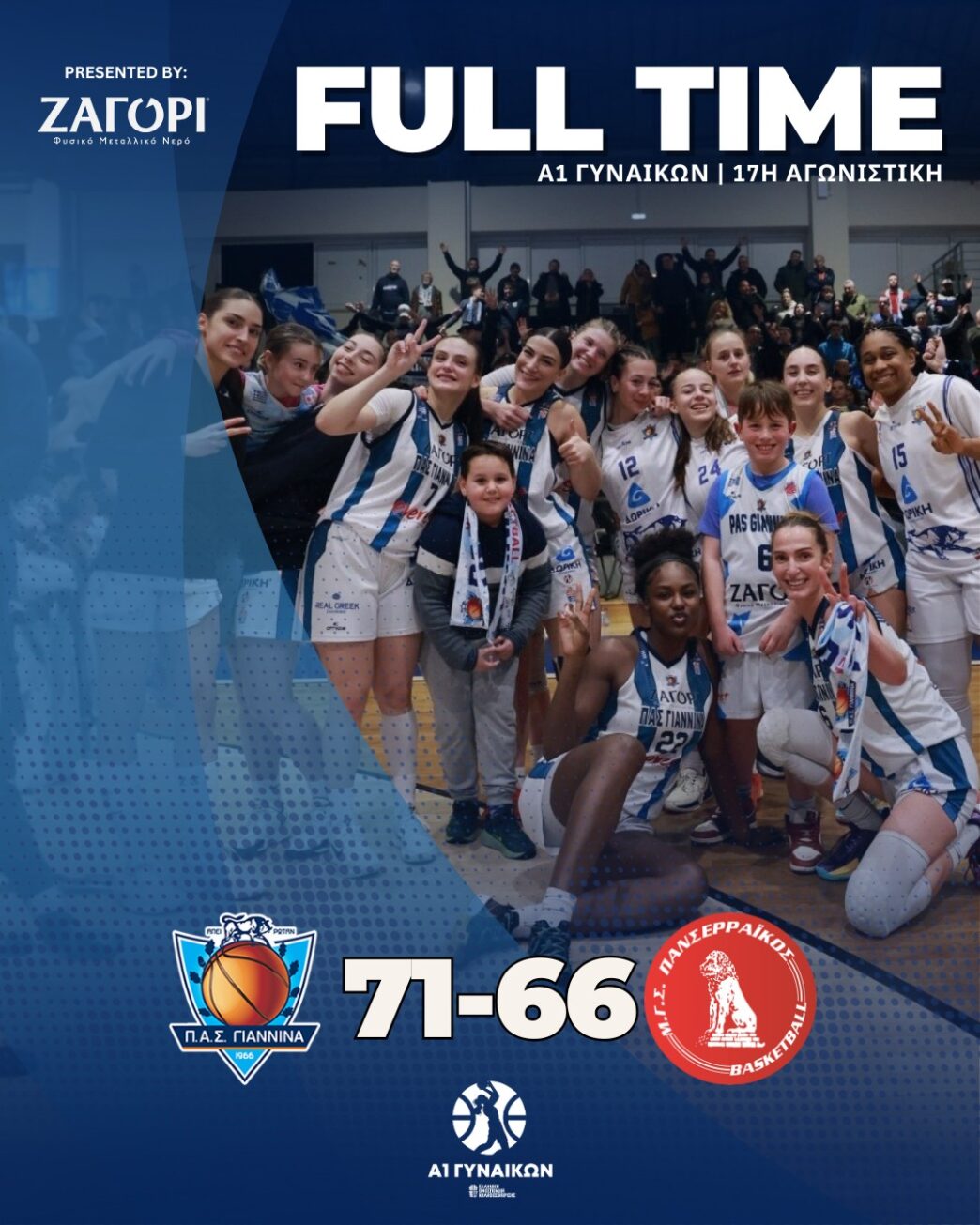 Ο ΠΑΣ Γιάννινα WBC σημείωσε μια κρίσιμη νίκη στον αγώνα ντέρμπι με τον Πανσερραϊκό, επιτυγχάνοντας σκορ 71-66 στο Νέο Κλειστό Γυμναστήριο, γεγονός που τον ανεβάζει μόνο του στην 4η θέση της βαθμολογίας. Η ομάδα του Αρίστιππου Χαντέλη κατάφερε να εξαλείψει τη διαφορά των τεσσάρων πόντων από την ήττα της στις Σέρρες, αποκτώντας έτσι πλεονέκτημα σε ενδεχόμενη ισοβαθμία.