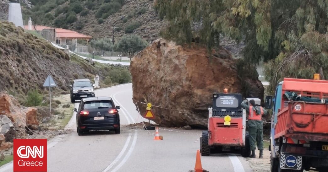 Κατολισθήσεις σημειώθηκαν στη Χίο την Κυριακή (1/2) λόγω της κακοκαιρίας, με τις Αρχές να προσπαθούν από το πρωί να επιχειρούν για να απομακρύνθουν έναν τεράστιο βράχο που έπεσε στην Εθνική Οδό Χίου – Καρδαμύλων, μεταξύ των θέσεων Δελφίνι και Σαραπιό.