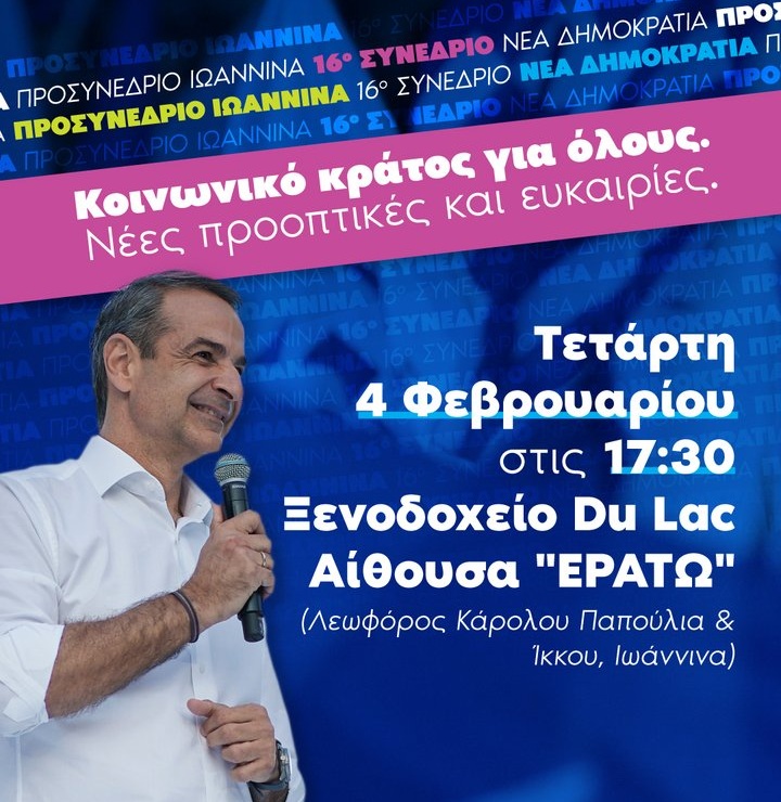 Χαμηλές πτήσεις φαίνεται να ακολουθούν οι προσδοκίες των Ηπειρωτών από την απογευματινή παρουσία του Κυριάκου Μητσοτάκη στα Ιωάννινα, στο πλαίσιο του πρώτου προσυνεδρίου της Νέας Δημοκρατίας. Παρά το γεγονός ότι η πόλη αποτελεί την αφετηρία του προσυνεδριακού διαλόγου για το 16ο Τακτικό Συνέδριο του Μαΐου, η ατζέντα που έχει διαρρεύσει εστιάζει σχεδόν αποκλειστικά στο κοινωνικό κράτος και την κοινωνική συνοχή.