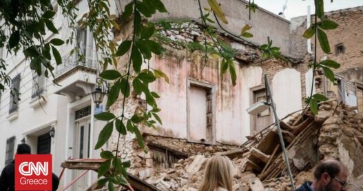 Τμήμα παλαιού κτηρίου κατέρρευσε στην οδο Αρκαδίου στο Ρέθυμνο, σκορπίζοντας μπάζα στο πεζοδρόμιο και στο οδόστρωμα.
