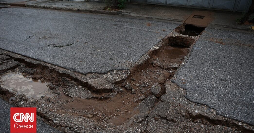Ήδη το τμήμα του δρόμου έχει αρχίσει να υποχωρεί εμφανώς, ενώ κατά μήκος του σημείου οι ζημιές είναι εκτεταμένες. Η άσφαλτος έχει ανοίξει, αποκαλύπτοντας πως το κάτω μέρος του δρόμου βρίσκεται στον αέρα.