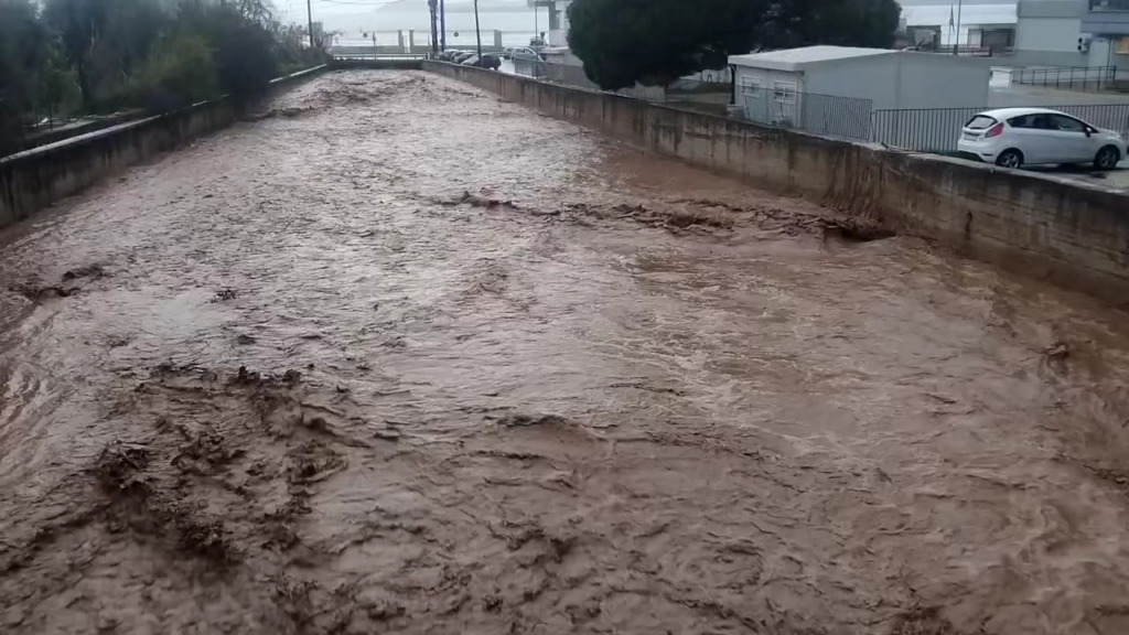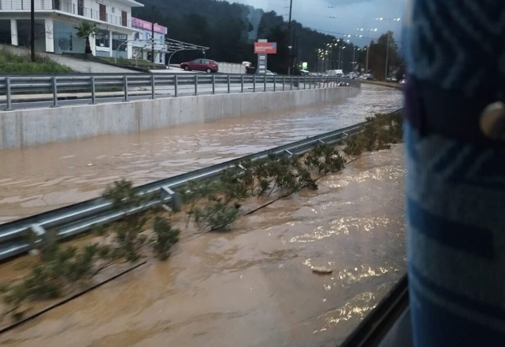 Η κυκλοφορία διεκόπη για μία ώρα, προκαλώντας ταλαιπωρία στους οδηγούς που κατευθύνονταν προς την πόλη. Την ίδια στιγμή, οι περιοχές Καλάμι, Τσιμέντα και Κορύτιανη βρέθηκαν στο επίκεντρο της κακοκαιρίας με σοβαρές υπερχειλίσεις. Ιδιαίτερα ανησυχητική είναι η εικόνα από το ρέμα Γραικοχωρίου, το οποίο διασχίζει την πόλη και εκβάλλει στο λιμάνι, καθώς η ροή του είναι πλέον ιδιαίτερα ορμητική και η στάθμη του αγγίζει τα όρια της κοίτης.