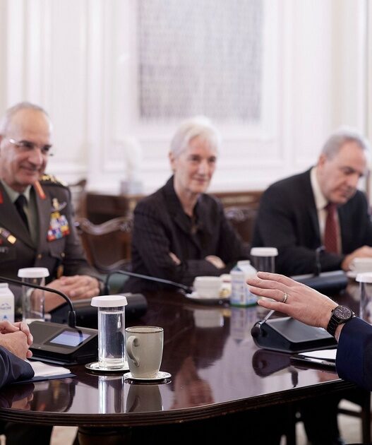 Από την πλευρά της κυβέρνησης συμμετείχαν ο Υπουργός Εξωτερικών Γιώργος Γεραπετρίτης, η Διευθύντρια του Διπλωματικού Γραφείου του Πρωθυπουργού, Πρέσβης Κατερίνα Νασίκα, η Διευθύντρια του Γραφείου Διεθνούς Στρατηγικού Σχεδιασμού και Επικοινωνίας του Πρωθυπουργού, Αριστοτελία Πελώνη, και ο Γενικός Γραμματέας Εθνικής Ασφάλειας Θάνος Ντόκος.