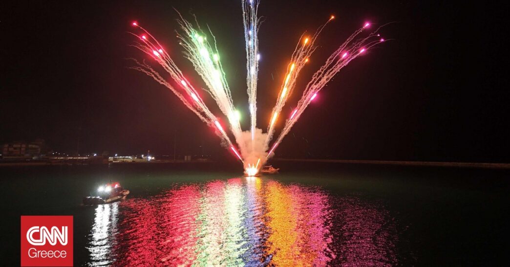 Παράλληλα, ο ουρανός της Πάτρας φωτίστηκε από χιλιάδες πυροτεχνήματα σε μια μοναδική στιγμή με ρυθμό, ένταση, και υπό τους ήχους δυνατής μουσικής.
