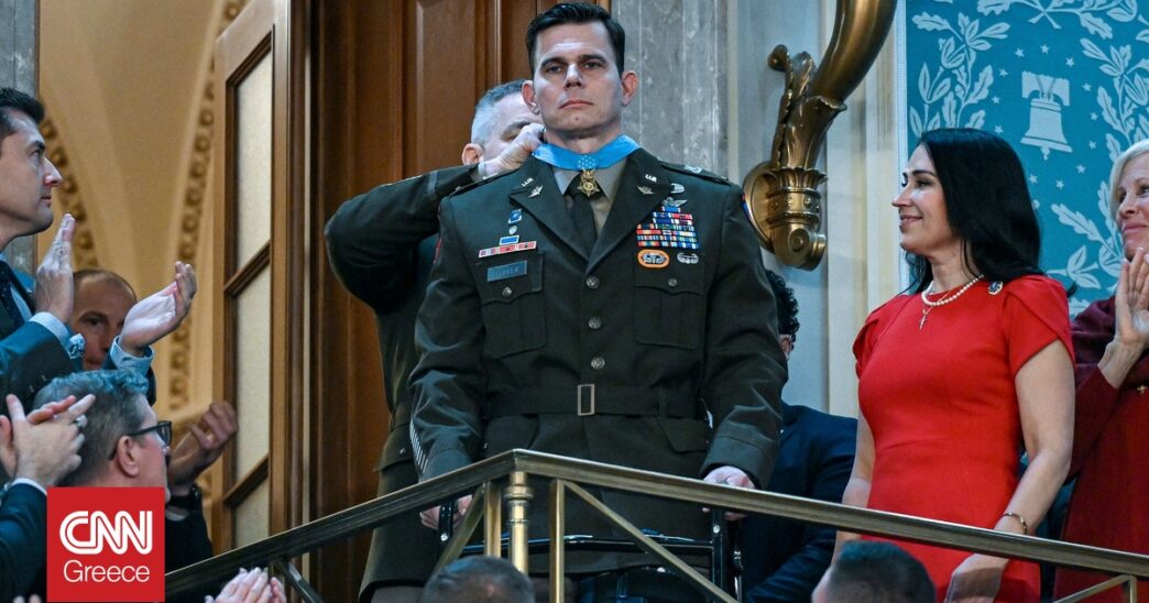 Το Μετάλλιο Τιμής στον Αρχισμηνία Έρικ Σλόβερ, πιλότο που τραυματίστηκε στην επιχείρηση που οδήγησε στη σύλληψη του Νικολάς Μαδούρο στη Βενεζουέλα, απένειμε ο Ντόναλντ Τραμπ, σε μία ιδιαίτερα φορτισμένη στιγμή της ετήσιας ομιλίας του για την «Κατάσταση της Ένωσης» στο Κογκρέσο.