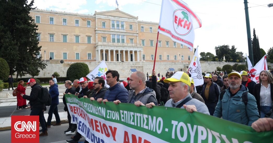 Πορεία προς το μέγαρο Μαξίμου πραγματοποιούν περίπου 300 εργαζόμενοι στον τουρισμό και τον επισιτισμό, οι οποίοι είχαν συγκεντρωθεί έξω από το υπουργείο Εργασίας συμμετέχοντας στην απεργία της Πανελλήνιας Ομοσπονδίας Εργαζομένων στον Επισιτισμό – Τουρισμό (ΠΟΕΕΤ).