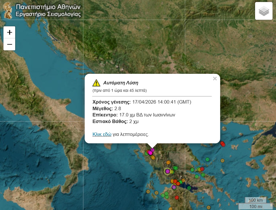 Σεισμός 2,8 Ρίχτερ στα Ιωάννινα: Αισθητός στην πόλη και το Ζαγόρι