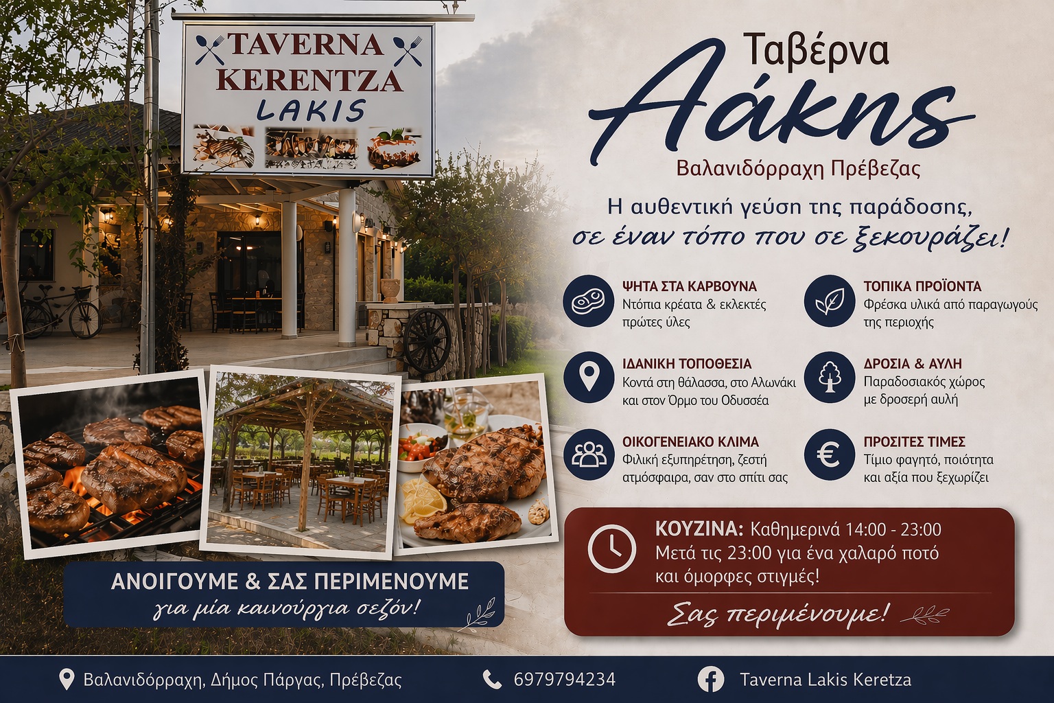 Με ανανεωμένη διάθεση και προσήλωση στις παραδοσιακές αξίες της γαστρονομίας, η Ταβέρνα Λάκης στη Βαλανιδορράχη Πρέβεζας υποδέχεται τη νέα σεζόν, επιβεβαιώνοντας τη φήμη της ως ένας αυθεντικός προορισμός για τους λάτρεις του καλού φαγητού. Το συγκεκριμένο κατάστημα επιλέγει να επενδύσει στην ποιότητα και τη συνέπεια, προσφέροντας γνήσια φιλοξενία που κερδίζει τόσο τους μόνιμους κατοίκους όσο και τους επισκέπτες της περιοχής.