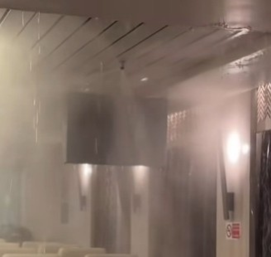 Το σύστημα ασφαλείας του πλοίου αντέδρασε ακαριαία, εκτοξεύοντας μεγάλες ποσότητες νερού στον χώρο, γεγονός που προκάλεσε έντονη αναστάτωση στους επιβάτες και προσωρινό πανικό.