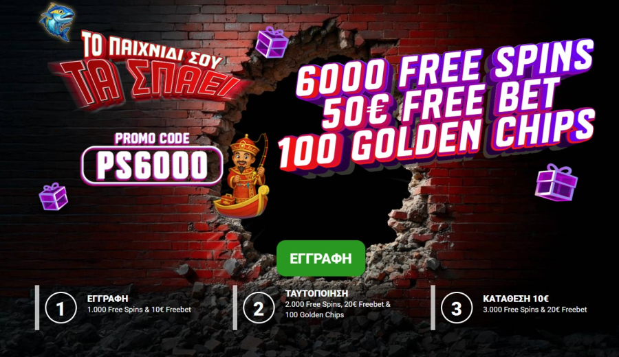 Το Pamestoixima.gr τα «σπάει» κι επειδή ο πρωταγωνιστής είσαι εσύ, σε περιμένει μια συναρπαστική τριπλή προσφορά* γνωριμίας! Με το promo code PS6000 λαμβάνεις έως και 6.150 δώρα* εντελώς δωρεάν χωρίς κατάθεση*!