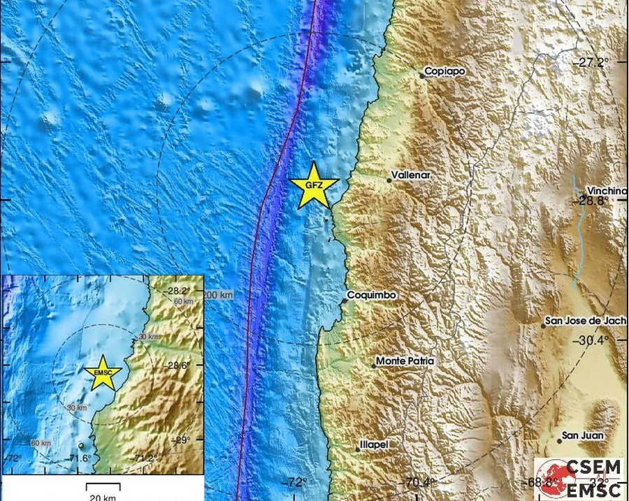 Το επίκεντρο του σεισμού είναι στην παραθαλάσσια περιοχή της κεντρικής Χιλής.